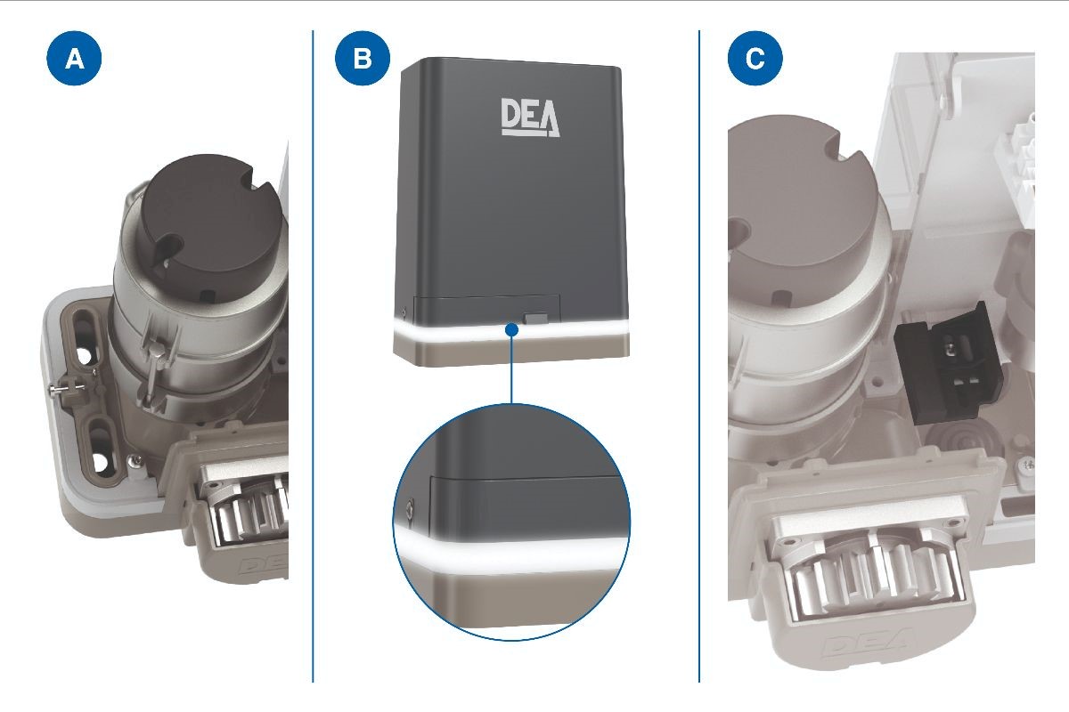 Кроме максимальной надёжности и защищённности, блоки управления DEA максимально просто и удобно настраиваются. Особенное внимание хотим уделить удобству настройки данного электропривода (блок с платой управления легко извлекается и интуитивно настраивается). Передняя панель управления с прозрачной крышкой и видимым дисплеем, с подставкой, которая может поворачиваться на 120°. Специалисту, монтирующему данный привод можно, удобно расположившись, выполнить всего лишь два действия: прописать пульты и настроить ход ворот, чтобы плата управления запомнила требуемую ширину проезда. Эти процедуры настолько просты, что выполнить их без труда сможет второклассник. Нет необходимости стоять в неудобной позе, просовывая голову между электроприводом и воротами. Не нужно устраивать возле ворот многочасовые "танцы с бубном" – вся процедура программирования привода у непрофессионала займёт не более 5 минут.