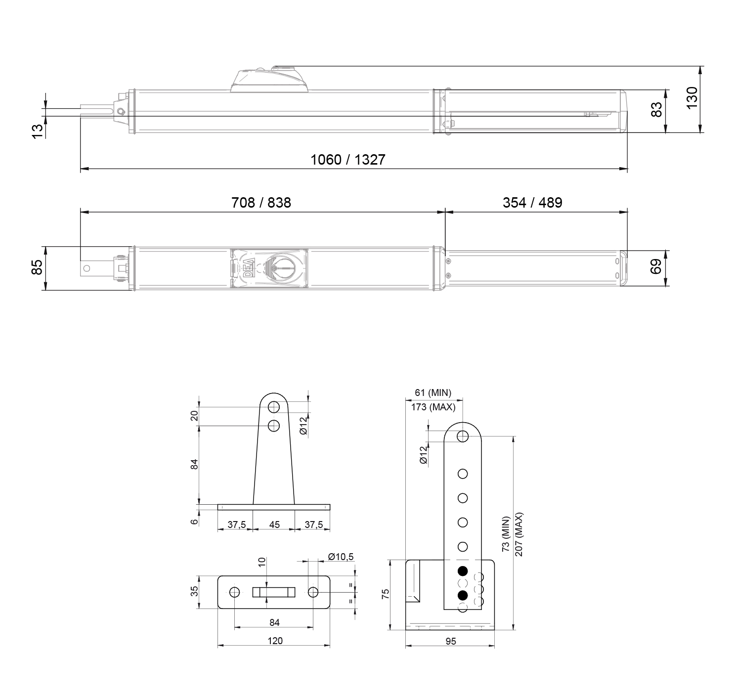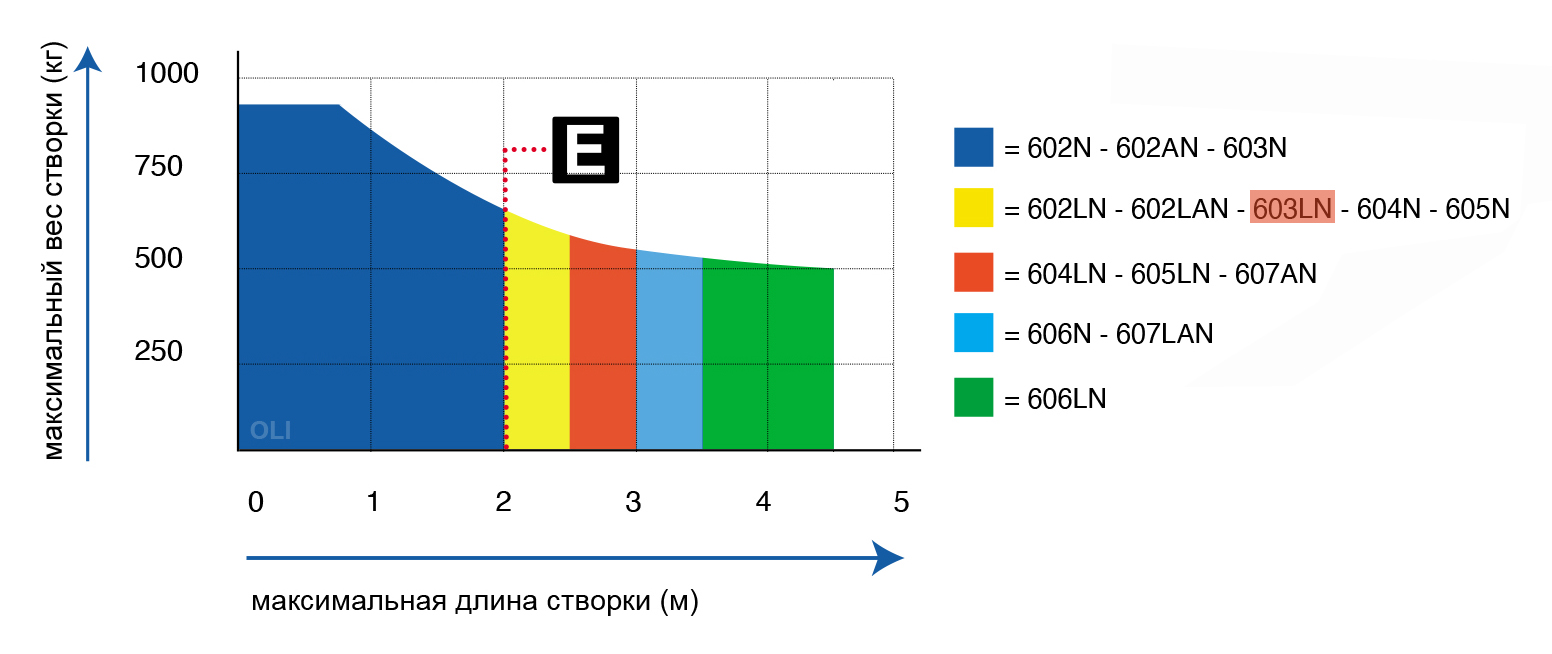 Для створок до 2,5 метров длиной и весом до 600 кг. Рекомендуем изучить таблицу ниже: