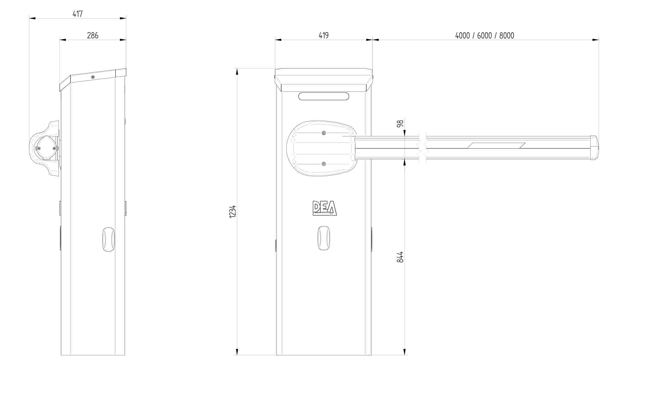 Все шлагбаумы DEA имеют индивидуальные ключи для доступа к блоку управления и электроприводу, а так же для перевода шлагбаума в ручной режим. Это защищает механизм от несанкционированных действий посторонних лиц.